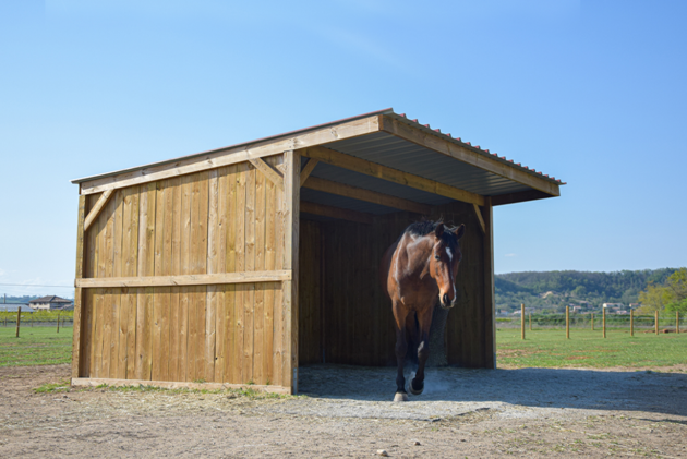 Abri stabilisé sur chaque parcelle (taille adaptée au nombre de chevaux présents)